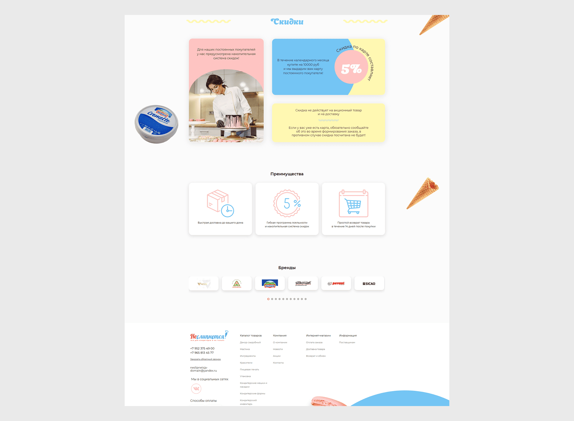 Полный цикл работы — около 4 недель. Новый сайт «Не слипнется!» стал современной и удобной цифровой платформой для кондитеров и мастеров.