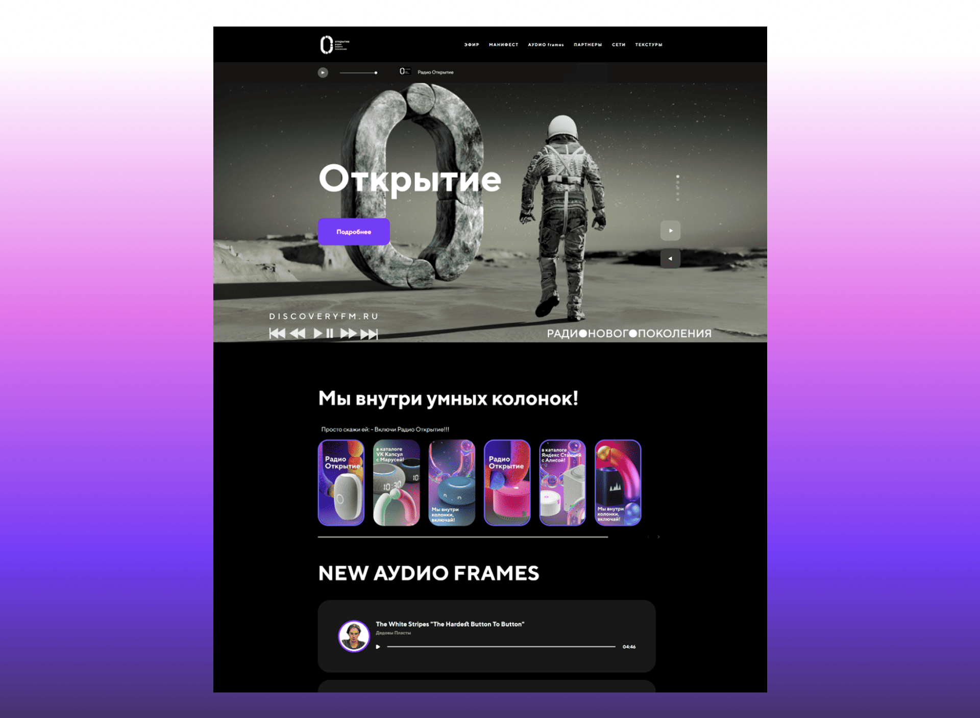 Полный цикл работы — около 3,5 недель. Новый сайт Радио Открытие стал динамичной и современной цифровой платформой — слушатели получают мгновенный доступ к эфиру, контенту и взаимодействию.